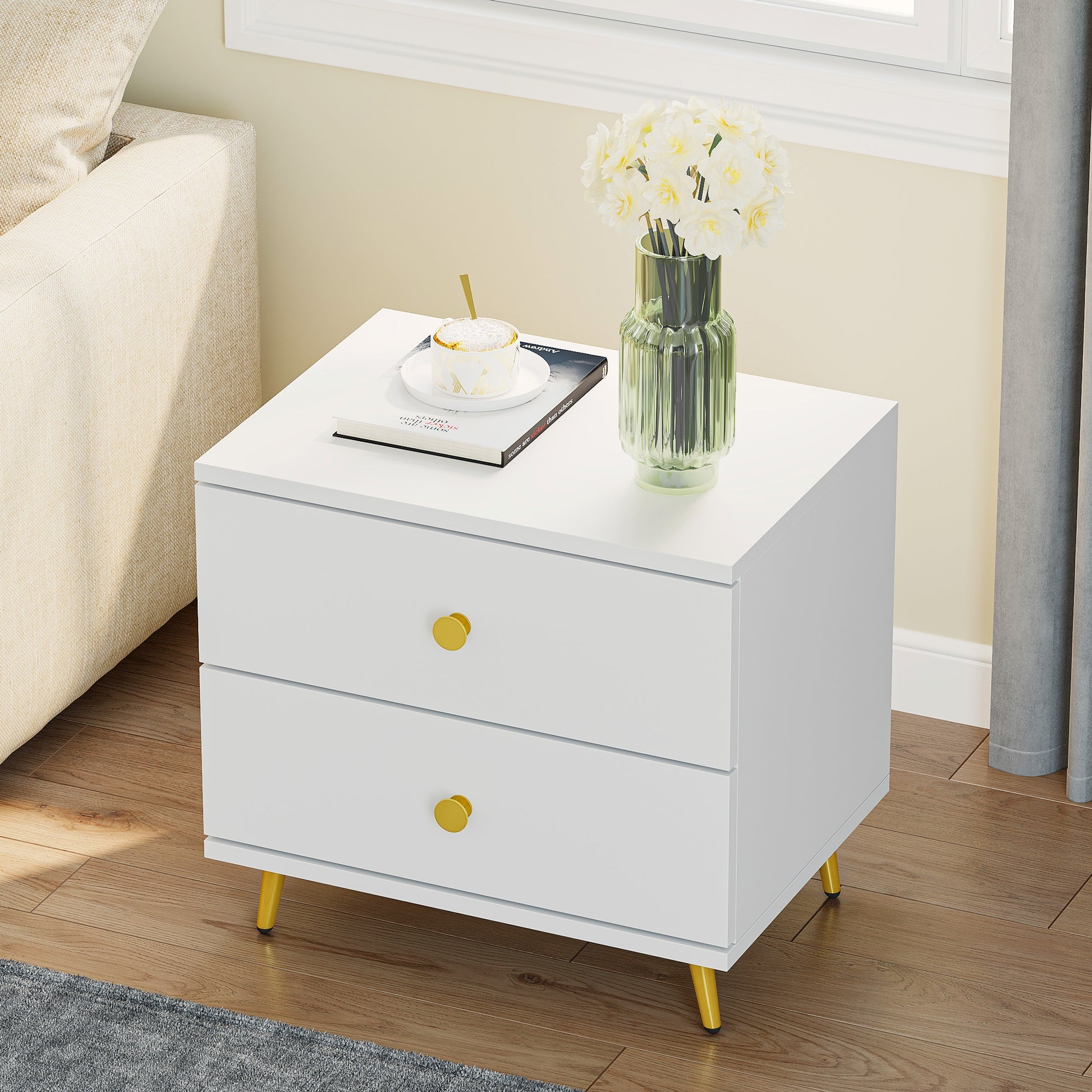 2 Stück Luxus-Doppel-Schubladen-Nachttisch mit goldenen Metallbeinen, multifunktionale Aufbewahrungstisch für Schlafzimmer/Wohnzimmer, Deko für das Bett, Raumorganisation, stilvolles Möbelstück, moderner Nachtkasten, langlebige Konstruktion, hochwertige