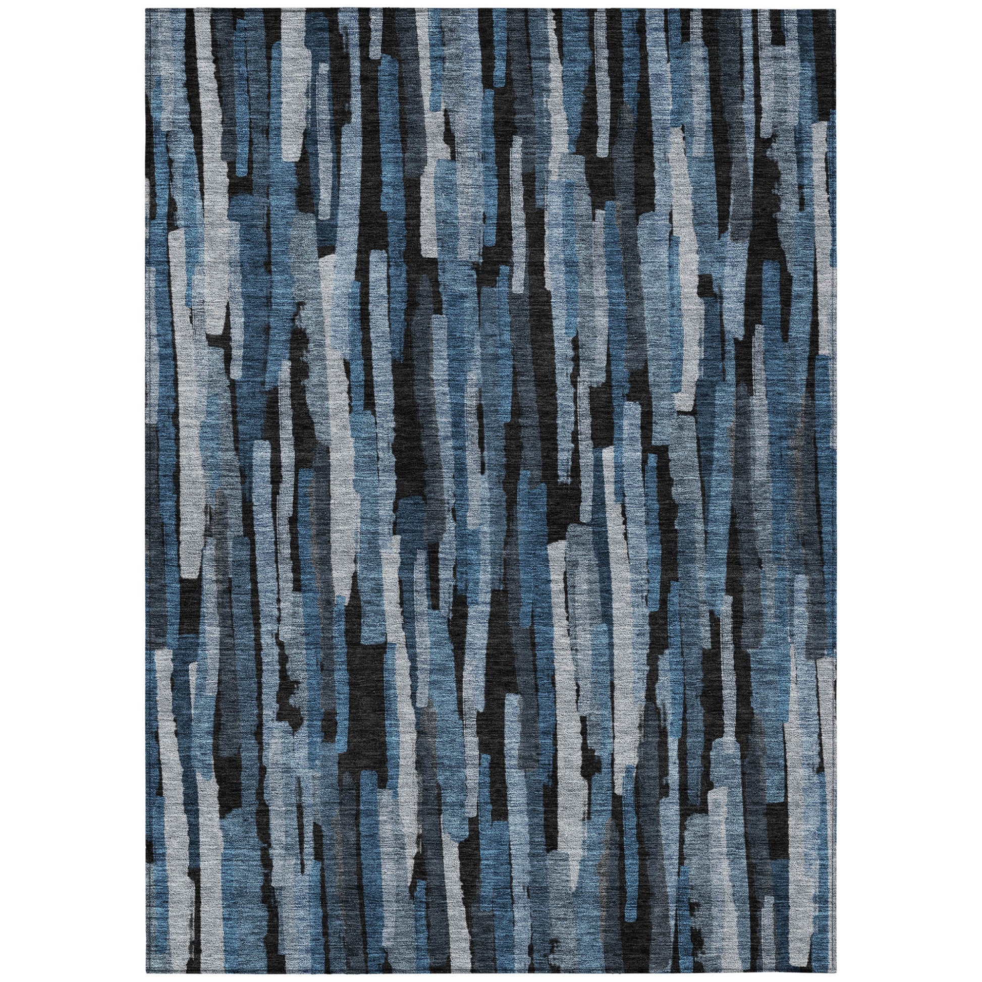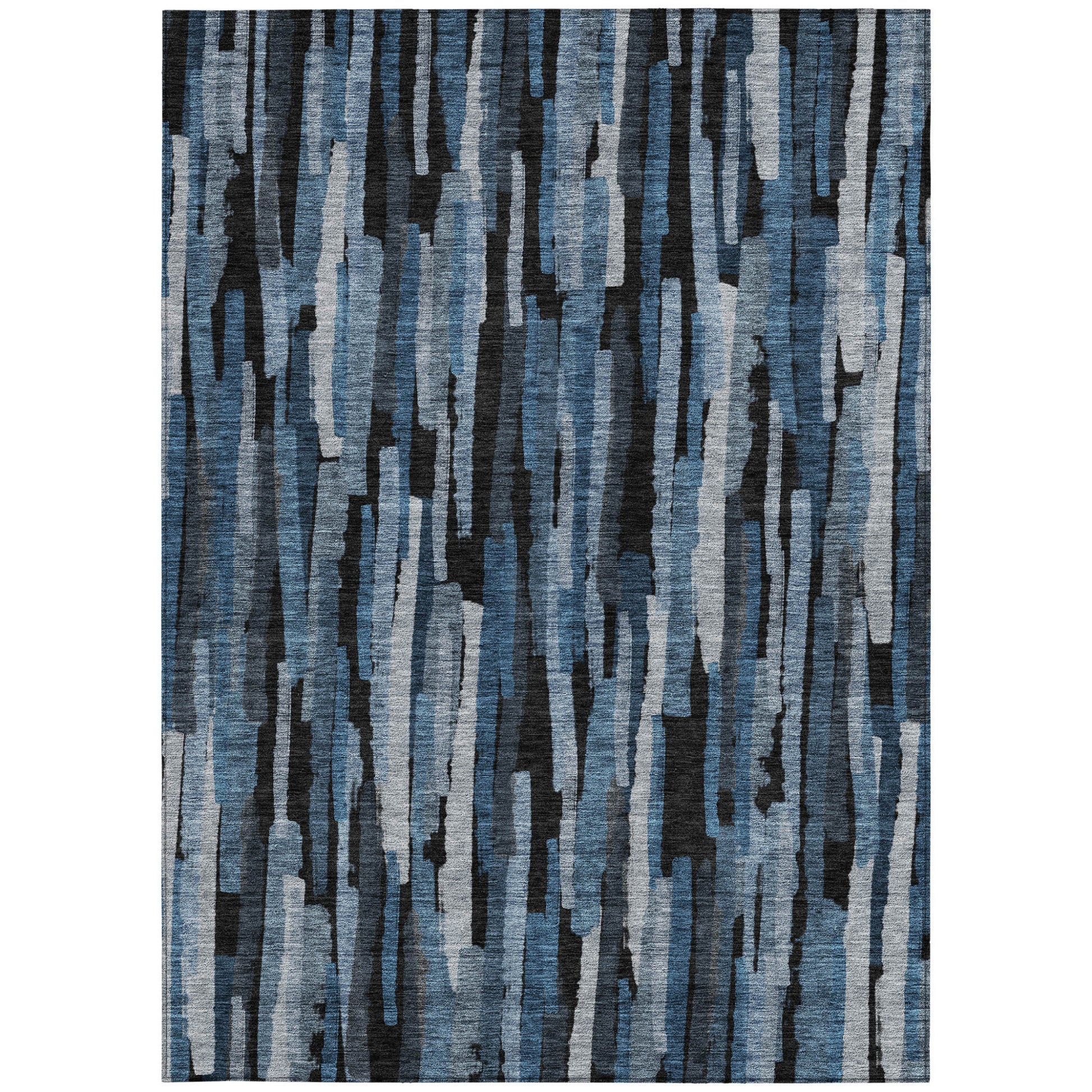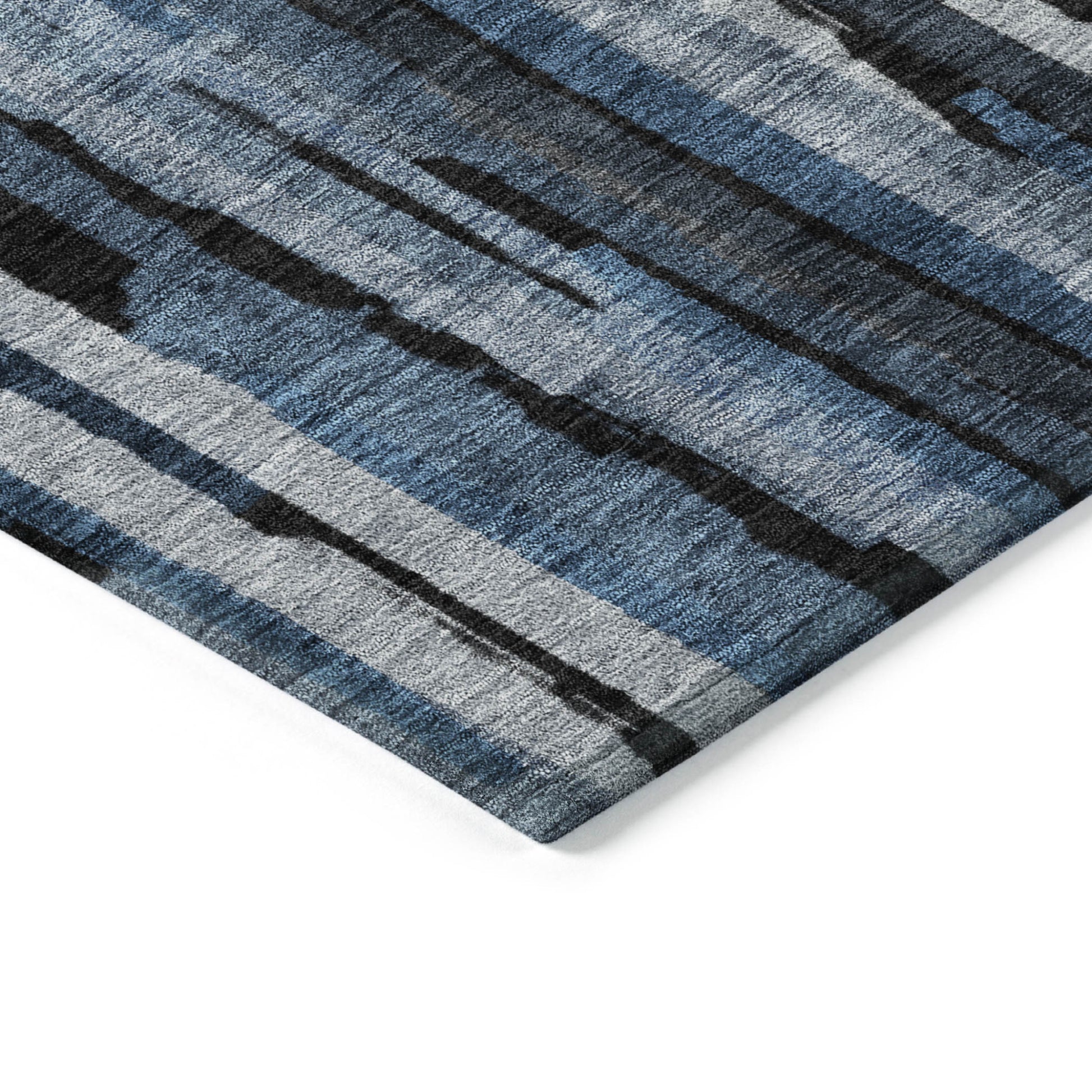 3' X 5' Blue Black And Gray Striped Washable Indoor Outdoor Area Rug
