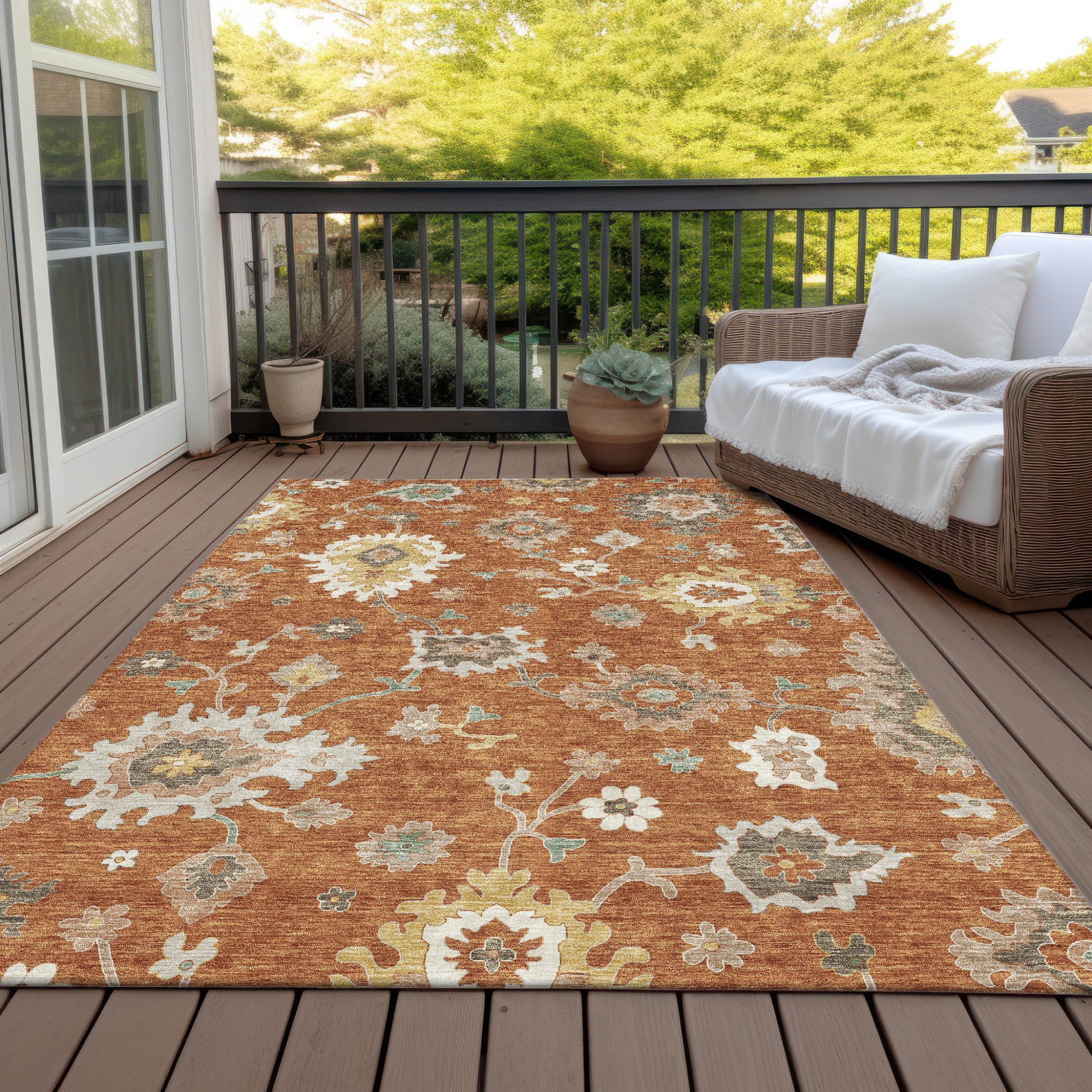 This 3-foot x 5-foot orange ivory and gray floral washable indoor outdoor area rug, is a great way to add warmth to a room. This rectangle shaped rug features a floral design that will work well both indoors or out. A classic shape marries with good looking design for your living room, hall, bedroom, porch, patio, or poolside. Ideal for outdoor spaces or high traffic areas with kids and pets, this rug is made from heavy duty polyester that is stain resistant to help repel water, dirt, and stains. Makes a great way to dress up your patio, porch, or poolside, but also works well as a durable and easy to maintain option in the kitchen, family room, or mudroom. 36-inch h x 60-inch w x 0.19-inch d.