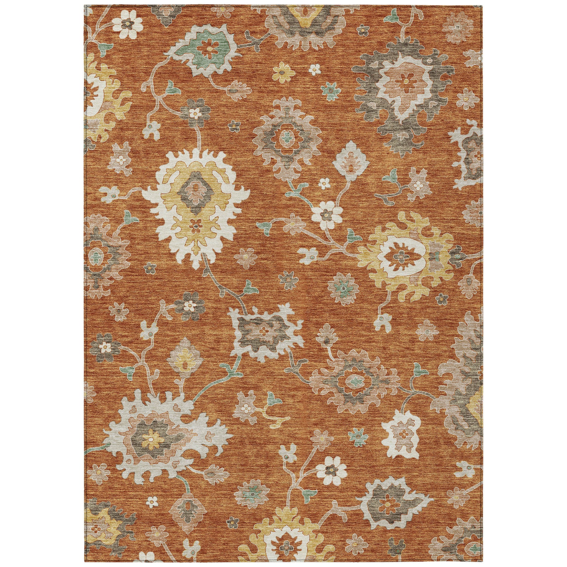 3' X 5' Orange Ivory And Gray Floral Washable Indoor Outdoor Area Rug