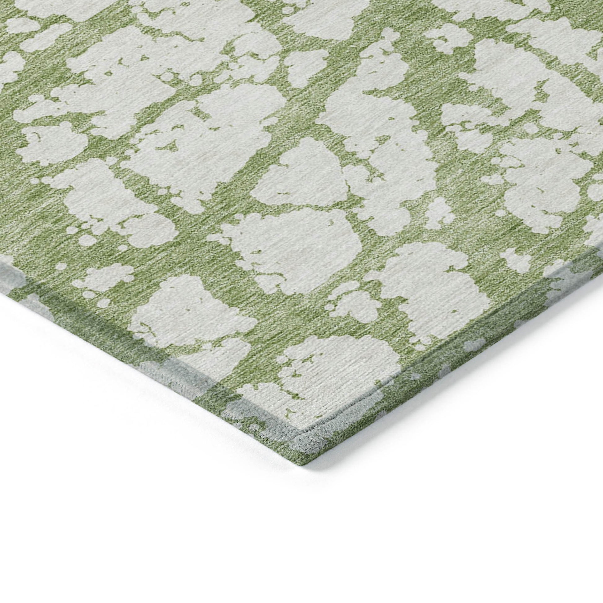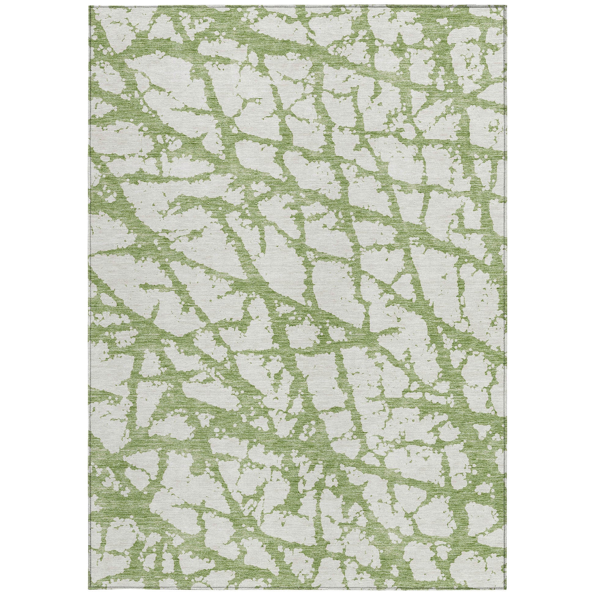 8' X 10' Green And Ivory Abstract Washable Indoor Outdoor Area Rug