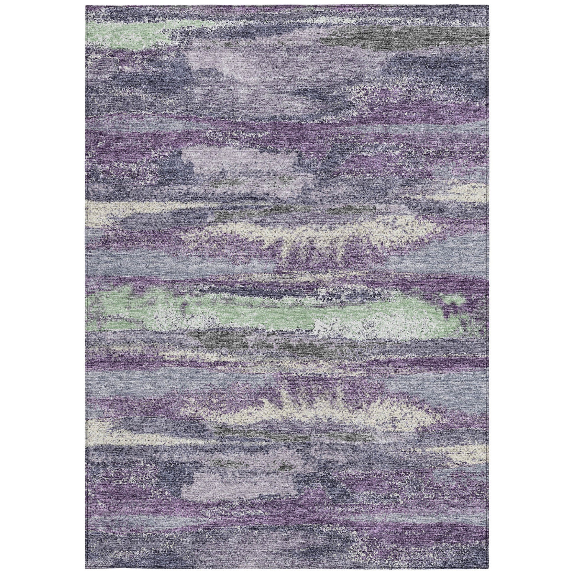 9' X 12' Purple And Lavender Abstract Washable Indoor Outdoor Area Rug