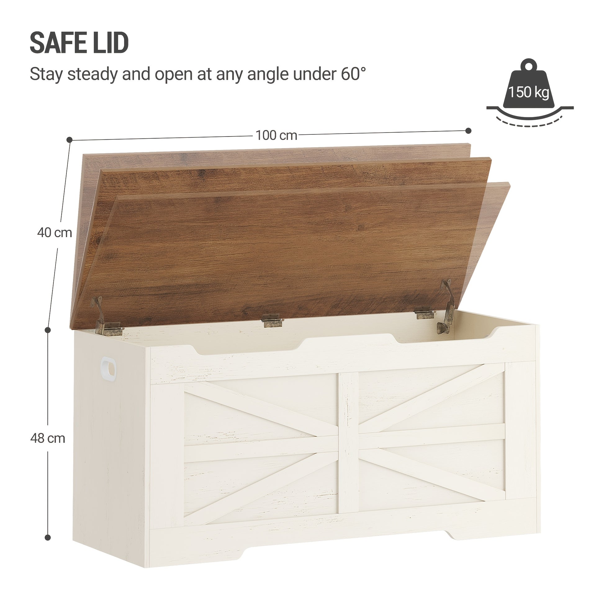 Hebel-Top-Aufbewahrungsbank mit 2 Sicherheitsscharnieren - 100cm Weiß & Holz Organizer für Eingangsbereich, Schlafzimmer, Wohnzimmer - Vielseitige Schuhaufbewahrung mit dekorativem Deckel, Klassisches Design, Stabile Konstruktion, Minimalistisches Design